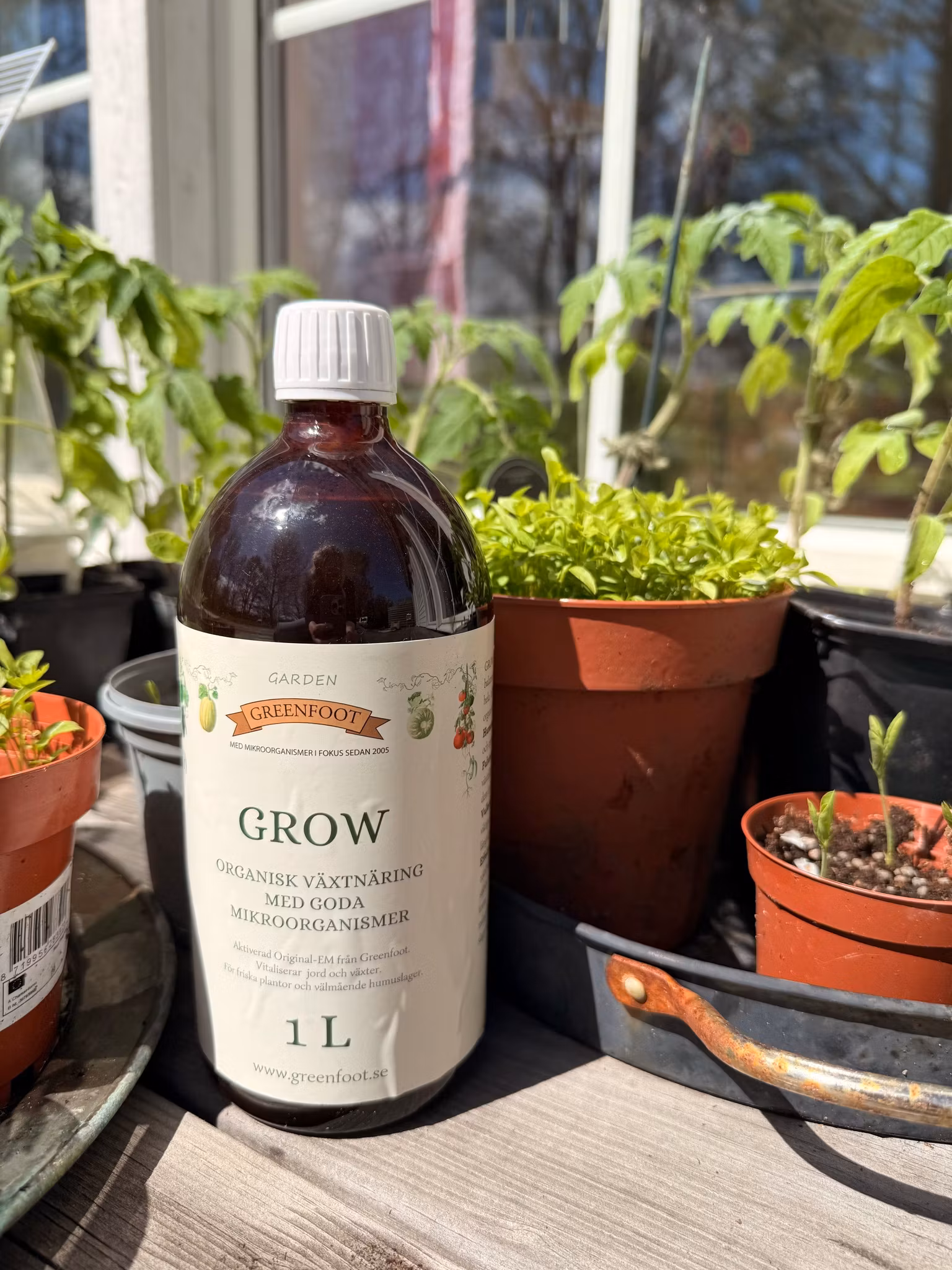 GROW från Greenfoot Garden är ett flytande biodynamiskt och organiskt gödsel med bra NPK-värde. GROW innehåller effektiva mikroorganismer, humussyror och värdef